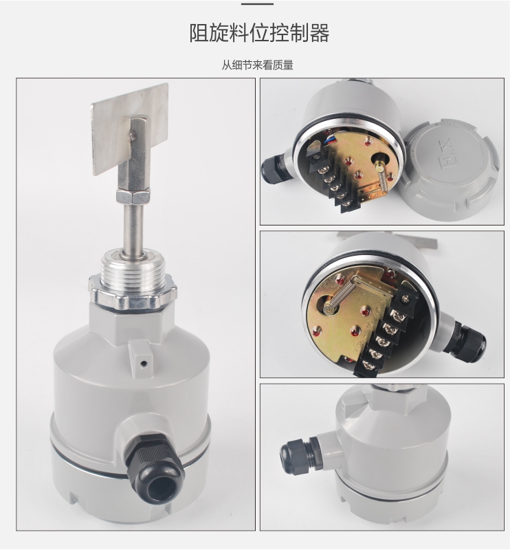 敞開或壓力傳輸送容器內(nèi)料位的控制。當料位碰到儀表的旋轉翼片時,控制器的微動開關觸點輸出報警或控制信號。