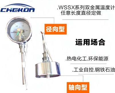 電接點(diǎn)雙金屬溫度計(jì)應(yīng)用于生產(chǎn)現(xiàn)場對(duì)溫度需自動(dòng)控制和報(bào)警。直接測量各種生產(chǎn)過程中-80~500℃范圍內(nèi)體、蒸汽和氣體介質(zhì)溫度。